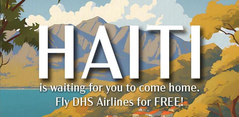 En las redes sociales, el DHS publicó la información de la aplicación con una imagen que contiene el mensaje: “Haiti is waiting for you to come home. Fly DHS Airlines for Free" (Haití está esperando que vuelvas a casa. Vuela gratis con DHS Airlines).
