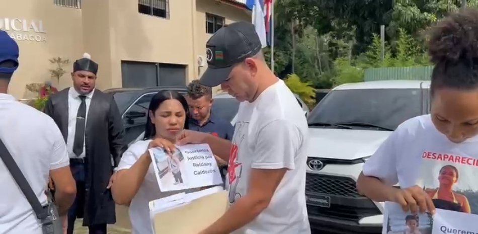 Los padres del menor Roldany Calderón se presentaron este lunes en las afueras del Poder Judicial de Jarabacoa para ofrecer una rueda de prensa tras cumplirse un año de la desaparición de su hijo en la comunidad Los Tablones, del distrito municipal de Manabao, Jarabacoa.