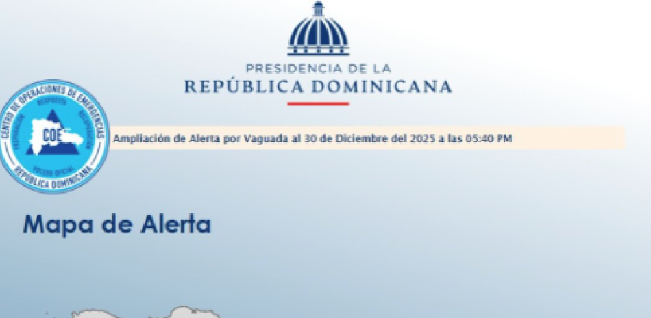 El Centro de Operaciones de Emergencias (COE) elevó a seis las provincias colocadas en el nivel de alerta verde debido a las condiciones meteorológicas previstas para los días restantes de este año.