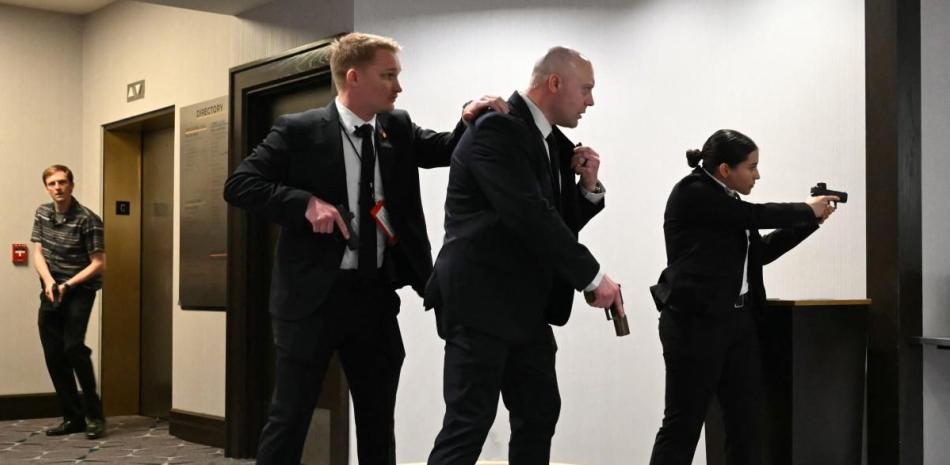 Enseguida, todos los ocupantes de la mesa presidencial fueron evacuados a lugar seguro y después más miembros del Servicio Secreto se desplegaron en la sala de baile portando rifles de asalto y pidieron a todas las personas en la sala que se pusieran a cubierto.
